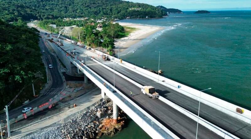 Ponte de Guaratuba: instalação do asfalto avança no acesso de Matinhos