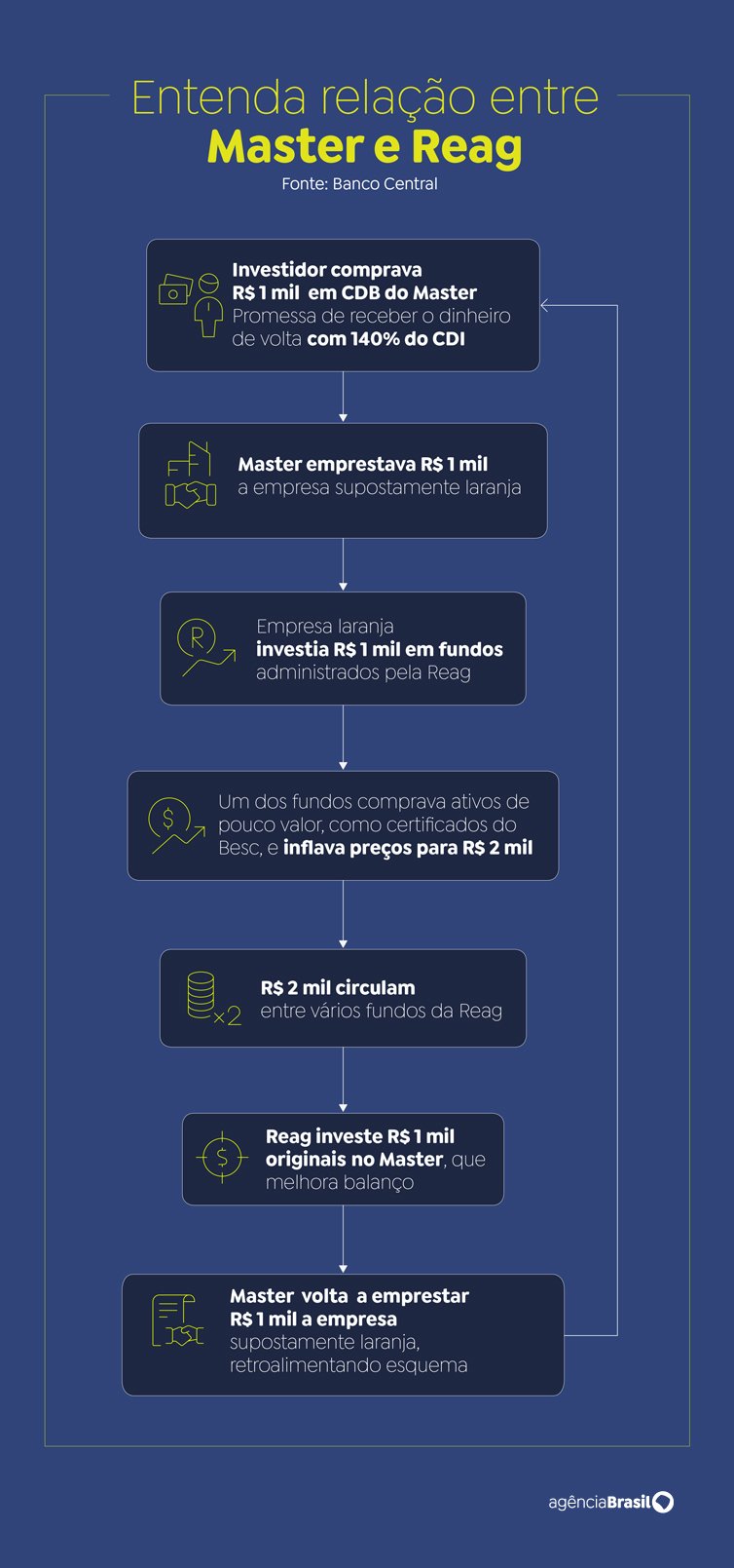 As liquidações do Banco Master, decretada pelo Banco Central (BC) em novembro de 2025, e da gestora de investimentos Reag, na quinta-feira (15) revelaram um dos episódios mais graves do sistema financeiro brasileiro. O caso envolve suspeitas de fraudes bilionárias, uso de fundos de investimento para ocultar prejuízos, tentativas de socorro via banco público e tensões entre o Supremo Tribunal Federal (STF) e o Tribunal de Contas da União (TCU) com o BC e a Polícia Federal (PF).