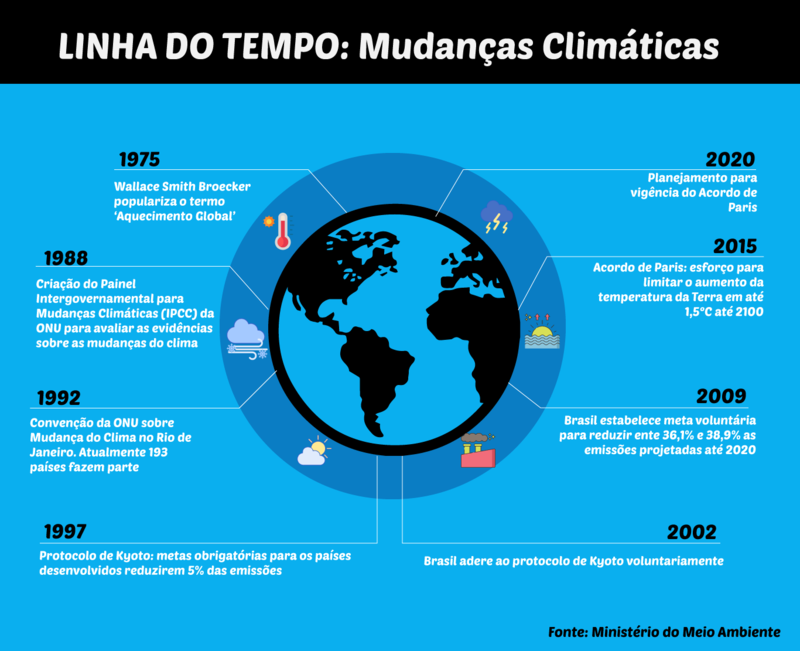 Na década de 1980, a Organização das Nações Unidas (ONU) criou o Painel Intergovernamental sobre Mudanças Climáticas (IPCC). O objetivo era coletar os estudos produzidos por pesquisadores e gerar relatórios de evidências sobre as mudanças do clima. Depois disso foram assinados protocolos e acordos entre os países para prevenir e diminuir a emissão de gases de efeito estufa.