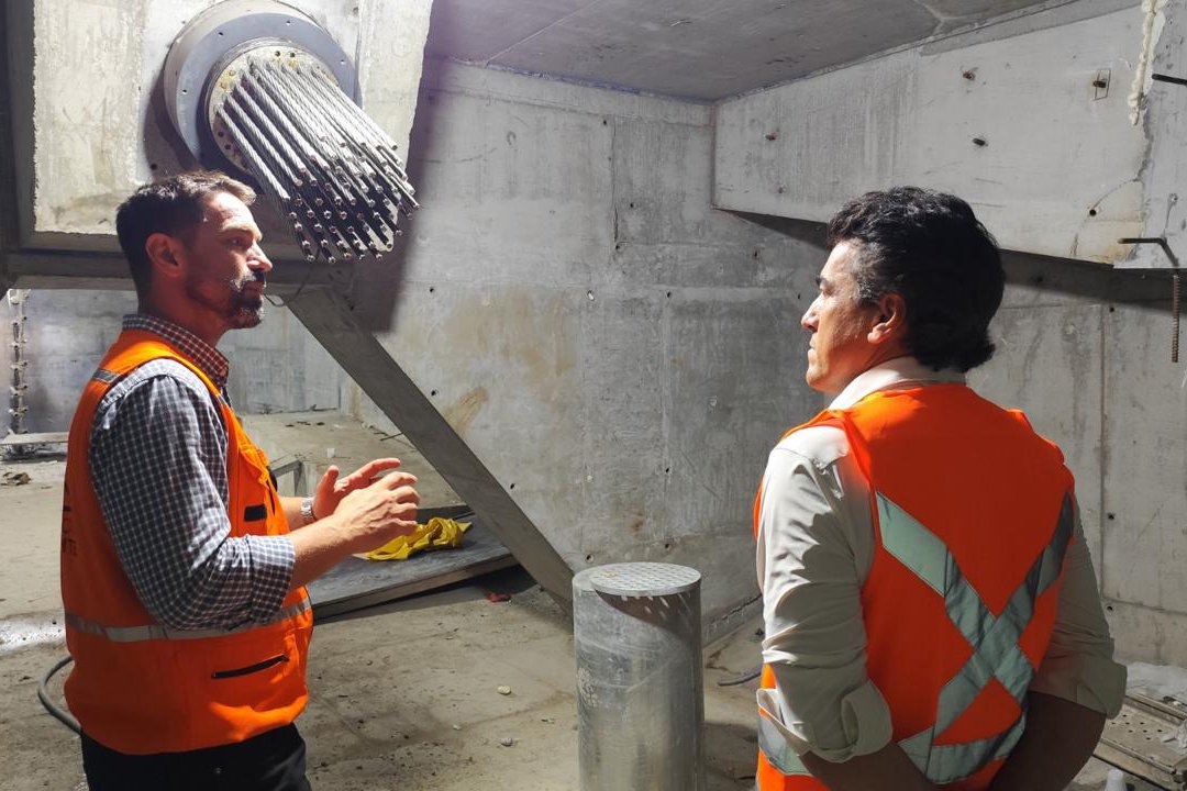 Os estais são responsáveis por sustentar o vão principal da ponte. Cada estai é formado por 61 cordoalhas – cabos de aço individuais que compõem o sistema. “É nessa área técnica que os estais foram montados, tensionados e depois protegidos. Todas as cordoalhas ficam acessíveis nesse espaço”, explica o engenheiro Rodrigues Marques, gerente de produção do Consórcio Nova Ponte, responsável pela execução da obra.
